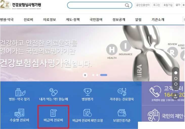 - 건강보험심사평가원 홈페이지 접속하여 비급여 진료비 선택